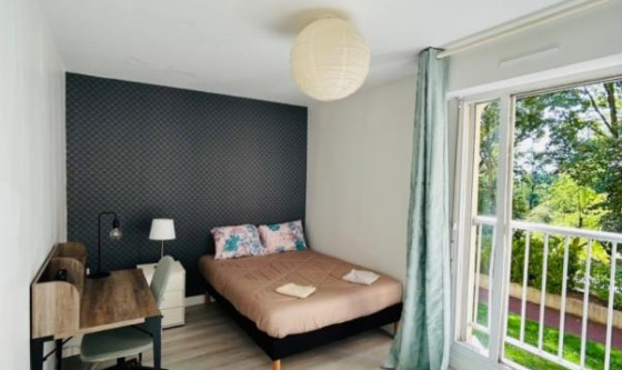 3 chambre(s) libre(s) dans une colocation de 3 chambres dans un appartment de 81m2 CERGY - PONTOISE, Les Larris Verts. 4 pièces meublé, situé au 1er étage d'une résidence calme avec gardien et ascenseur offrant entrée avec placard, séjour ouvrant sur balcon sans vis à vis et vue sur la forêt, cuisine US équipée, 3 chambres dont une avec balcon, 2 salles d'eau, WC. Très bien équipé, belles prestations, bon état Descriptif - un salon de 18 m2 sans vis a vis avec vue sur le bois équipé d'une table et 4 chaises, une commode, une TV avec table basse équipée des chaines TV, l'accès au WIFI en fibre optique + accès à un grand balcon depuis le salon avec une table extérieure et deux chaises - une cuisine US tout équipé : micro-onde, un grand réfrigérateur-congélateur, un four, une machine à laver de 9 litres, couverts, assiettes, verres .... et rangement - 2 salles d'eau : une grande salle de douche avec lavabo, une seconde salle de douche cabine avec lavabo - 1 WC - Des circulations communes avec un grand dressing à l'entrée et un vélo de course d'appartement - 3 chambres tout équipé : armoire, table de bureau, chaise de bureau et une commode sans vis à vis. Il s'agit d'une résidence très calme avec gardien et sécurisée. L'appartement est situé à 10 minutes du centre commercial les 3 Fontaines et de la gare RER A de Cergy Préfecture, proche des écoles également. Updated on 07/11/2025 Mise à jour le 07/11/2025