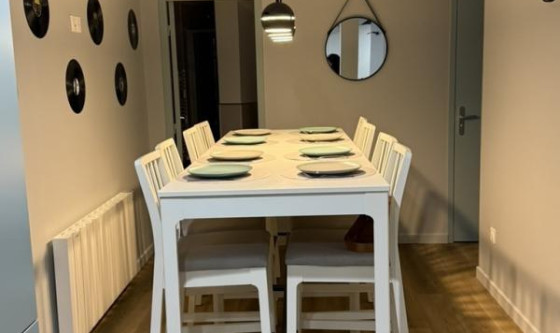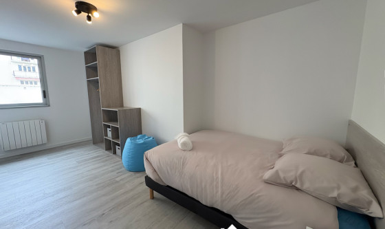 7 chambre(s) libre(s) dans une colocation de 7 chambres dans une maison de 170m2 Colocation entièrement neuve et meublée pour 7 étudiant(e)s à Reims centre secteur Moissons. 10 minutes à pied du Campus Science Po, 8 minutes en voiture de NEOMA Campus 2 ou 25 minutes en tramway. 15 minutes à pied de la Place d'Erlon (centre-ville). Maison neuve tout confort sur deux niveaux au calme et sécurisée dans une rue chic du centre avec grande pièce de vie. Sept chambres meublées : porte avec serrure, lit double, bureau, rangements. Draps/serviettes fournis. *Cinq chambres avec salles d'eau privatives. Espaces communs : Grande cuisine équipée : grands placards, 2 réfrigérateurs, plaque à induction, hotte, four et micro-ondes. Grande table à manger. En complément : lave linge et sèche linge. Wifi professionnel. Option parking : possibilité de louer une place. Loyer + 50€ provision de charges. Location sans solidarité / Baux indépendants. Éligible aux aides logement. Updated on 12/12/2025 Mise à jour le 12/12/2025