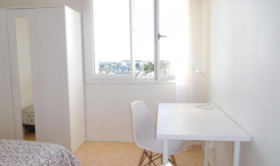 1 chambre(s) libre(s) dans une colocation de 1 chambres dans un appartment de 67m2 1 chambre meublée disponible dans appartement 67 m² en colocation (3 chambres au total) 2 filles étudiantes occupent les 2 autres chambres Appartement propre, très lumineux, au calme, au 6e étage. Localisation : Bd Oscar Leroux à Rennes, à 20 mn de Rennes School of Business, à 15 mn de l'université RENNES 2 A proximité immédiate : Métro, bus, commerces, centre commercial Alma, En commun : - un grand salon - cuisine aménagée et équipée (four micro onde, frigo, cafetière, vaisselle, couverts, casseroles.....) - salle de bain - WC séparé - INTERNET WIFI Chaque chambre privée et meublée entre 9 et 12 m2 : lit, armoire, bureau, chaise, porte manteau, , luminaires.... Updated on 26/11/2025 Mise à jour le 26/11/2025