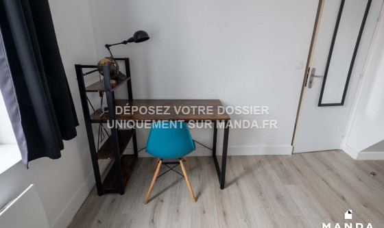 Logement Manda ! Visitez et déposez votre dossier uniquement sur notre plateforme ! Nous ne vous enverrons jamais le bail ou le RIB par mail - tout est sécurisé sur notre plateforme. Disponibilité : Immédiate RDC • 9 m² • Chambre dans T5 (Chambre 4) • 400 € MANDA-70487 L'agence Manda vous propose cette jolie chambre en colocation meublée, dans une maison à Roubaix. Les parties communes comprennent un séjour agréable avec canapé et écran plat, une cuisine entièrement équipée, ainsi qu'une salle d'eau avec douche et WC séparés. La chambre concernée dispose d'un lit simple et d'un bureau, offrant un espace fonctionnel et confortable pour étudier ou travailler. Idéalement situé dans un quartier résidentiel calme et bien desservi, le logement se trouve à proximité des commerces, des écoles et des transports en commun. Disponible immédiatement, cette jolie colocation n'attend que vous ! VOUS POUVEZ VISITER PLUS DE 3 000 LOGEMENTS (visite virtuelle + vidéos) ET DÉPOSER VOTRE CANDIDATURE SUR LE SITE WEB MANDA (REF : MANDA-70489) Référence du bien : MANDA-70489