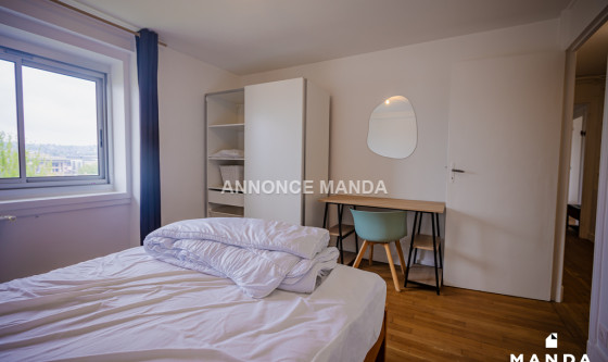 Logement Manda ! L'agence Manda vous propose cette jolie chambre en colocation meublée, située à Rouen, avec vue sur la cathédrale. Les parties communes sont composées du séjour lumineux avec canapé, écran plat et table à manger, de la cuisine entièrement équipée et de la salle d'eau avec douche. La chambre concernée est équipée d'un lit double et d'un bureau. Idéalement situé dans un quartier résidentiel paisible et bien desservi, le logement est à proximité des commerces, des écoles et des transports en commun. Disponible immédiatement, cette jolie colocation n'attend que vous ! Référence du bien : MANDA-64615