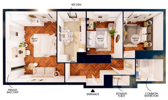 - Surface : 65m²