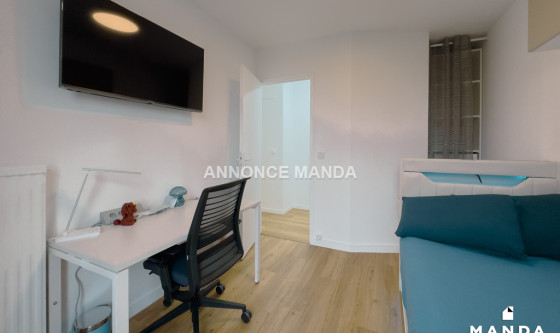 Logement Manda ! L'agence Manda vous propose cette charmante chambre en colocation meublée, idéalement située à Saint-Ouen-l'Aumône. Les espaces communs comprennent un séjour lumineux et convivial avec canapé, une cuisine entièrement équipée, ainsi que deux salles d'eau modernes avec douche. La chambre, équipée d'un lit simple, d'un bureau et d'un écran plat, offre un espace confortable et fonctionnel, idéal pour étudier ou se détendre. Située dans un quartier résidentiel calme et bien desservi, la résidence permet un accès rapide aux commerces, aux établissements scolaires et aux transports en commun. Une place de parking sécurisée en sous-sol est disponible en option pour 50 € par mois, soit un loyer total de 600 € par mois. Vous pouvez également opter pour le stationnement extérieur gratuit, avec un loyer de 550 € par mois. Disponible immédiatement, cette colocation de qualité est prête à vous accueillir ! Référence du bien : MANDA-69193
