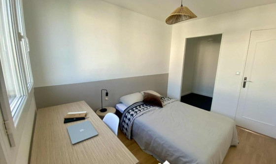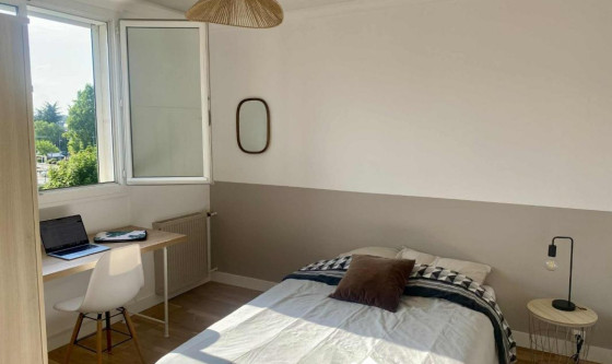1 chambre(s) libre(s) dans une colocation de 1 chambres dans un appartment de 80m2 Colocation dans un appartement T4, refait à neuf, situé à 15 min à pied de la gare de St Pierre-des-Corps et à proximité immédiate des commerces et des transports en commun. Bus 5 direct vers Tours Centre - Place Jean Jaurès en 14 min. 10 min à pied d'un Auchan Supermarché. Dans un quartier calme et dans une résidence sécurisée avec parking fermé, l'appartement est au 3e étage sans ascenseur. L'appartement de 80m², rénové récemment, se compose de : • Une entrée avec placard • Une cuisine indépendante, aménagée, équipée et dinatoire : frigo, four, plaque de cuisson, micro-ondes, machine à café, lave-linge • Un salon lumineux avec espace dinatoire (20m²) • Un balcon • 3 chambres de 10 à 14m² avec lit double, bureau, dont 2 avec dressing aménagé -> plus qu'une chambres dispo ! • Une salle d'eau Les + : • Connexion internet haut débit + Netflix compris dans le loyer • Local vélo sécurisé • Stationnement libre sur le parking de la résidence Conditions & loyer : • toutes charges comprises : chauffage, eau, électricité, ordures ménagères, entretien des parties communes. • Colocation possible (3 personnes max) • Un garant exigé par locataire (ayant un salaire similaire à 3 fois le montant du loyer) • Dossier complet à envoyer avant toute visite (pièces justificatives classiques) Intéressé(e) ? Premier contact par message pour visiter ou poser des questions. Photos supplémentaires à la demande ! Updated on 18/11/2025 Mise à jour le 18/11/2025