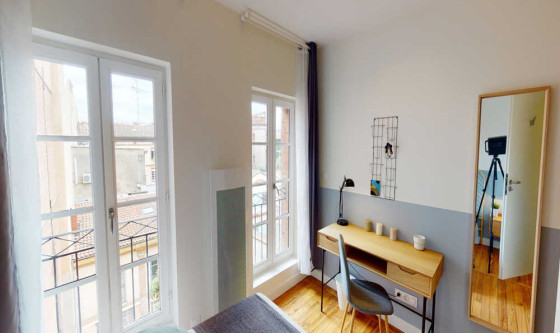 2 chambre(s) libre(s) dans une colocation de 2 chambres dans un appartment de 120m2 Colocation meublée ! -------------------------------- Tous nos appartements sont situés en centre-ville et proches de toutes commodités et transports en communs (Métro, Tramway et Bus). --------- Cette superbe chambre en colocation, meublée, équipée et tout inclus à Toulouse unit confort et design. Elle offre de nombreux équipements comme un lit confortable et hypoallergénique avec couette et oreillers. Ne vous manque plus à apporter que vos vêtements pour y vivre ! La chambre possède un cadenas si besoin. Le logement est localisé dans le quartier Jeanne d'Arc, en plein coeur de Toulouse. De nombreux commerces, transports publics, restaurants sont situés à proximité. La colocation est à l'étage 3 sans ascenseur. Elle est prête-à-vivre et propose une cuisine complètement équipée avec frigo, poêles, casseroles, vaisselle, bouilloire, ustensiles, micro-ondes… Ainsi que lave-linge, tancarville, fer à repasser, planche à repasser. Tout le nécessaire pour le ménage est sur place au sein de cette colocation : balai, balai-brosse, aspirateur, seau et serpillère… Chaque colocation meublée Joivy inclut toutes les charges : eau, assurance habitation, charges de copropriété, taxe sur les ordures, wifi illimité, électricité. Toutes nos chambres sont entièrement meublées (lit, bureau, penderie, couette, oreillers…). --------- Tous nos appartements sont entièrement équipés (lave-linge, vaisselle, décoration…) par nos équipes, qui se chargent également de la maintenance technique et matérielle. --------- Durée minimum de séjour : 1 mois Appartement éligible à la CAF jusqu'à 258€ / mois. La CAF pour Caisse d'allocations familiales est un service public gratuit et français éligible pour tous,y compris les étranger et qui peut vous aider financièrement à payer une partie de votre logement en fonction de votre situation que vous soyez français ou étranger. Pour connaître le montant potentiel de votre aide, rendez-vous sur le site de CAF et complétez l'estimation en ligne des APL (aide pour le logement). Frais de services : à partir de 390€ Les frais de services couvrent l'écriture du bail mais également l'assistance tout au long de votre séjour. Les frais de services couvrent ainsi la réparation et l'entretien du matériel ainsi que l'accès à notre support ultra réactif en cas de besoin d'intervention dans votre logement. Caution : 700€ --------- Nous accueillons principalement des étudiants ou des jeunes actifs français ou étrangers de 18 à 35 ans. Notre objectif est de faciliter l'accès à un logement meublé et parfaitement équipé et de vous permettre de faire de belles rencontres. Nos locataires sont de toute origine et toute culture ! Updated on 11/11/2025 Mise à jour le 11/11/2025