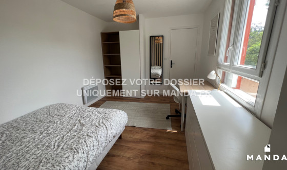 Logement Manda ! Visitez et déposez votre dossier uniquement sur notre plateforme ! Nous ne vous enverrons jamais le bail ou le RIB par mail - tout est sécurisé sur notre plateforme. Située à Toulouse, cette chambre à louer dans une colocation se trouve rue de la Mayenne. Non loin l'université et de la gare de Gallieni-Cancéropôle, le logement est proche de l'arrêt de bus « chemin de papus » (1 min à pied), qui permet de rejoindre la ligne de métro A en 7 minutes (arrêt Mermoz). Proche également de toute commodité et notamment situé à deux minutes à pied du supermarché Eden Market, il dispose d'un balcon filant. Internet, eau chaude, chauffage et électricité sont inclus dans les charges. Le logement est éligible aux APLs. La chambre concernée par cette location se compose d'un lit double, d'un bureau et d'une armoire. Les parties communes se composent du reste de l'appartement, avec un grand salon-séjour, d'une cuisine séparée et équipée, d'une buanderie, d'une salle d'eau. Les WC sont séparés. L'immeubles dispose de places de stationnement libre au sein de la résidence. Cette jolie chambre dans une colocation n'attend plus que vous ! VOUS POUVEZ VISITER PLUS DE 3 000 LOGEMENTS (visite virtuelle + vidéos) ET DÉPOSER VOTRE CANDIDATURE SUR LE SITE WEB MANDA (REF : MANDA-37205) Référence du bien : MANDA-37205