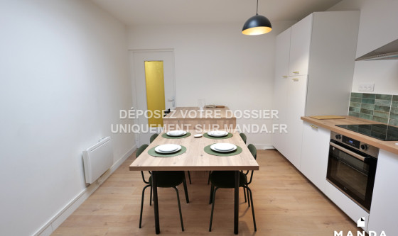 Logement Manda ! Visitez et déposez votre dossier uniquement sur notre plateforme ! Nous ne vous enverrons jamais le bail ou le RIB par mail - tout est sécurisé sur notre plateforme. Située à Tourcoing, cette chambre dans une maison T5 meublée en colocation de 100m2 se trouve Rue du Dahomey. A 15min de l'arrêt de métro Colbert et non loin des transports en commun, le logement est proche de toutes les commodités. La maison est composée d'un salon, d'une cuisine, de 4 chambres, d'une salle de bain avec douche, d'une buanderie avec lave-linge et de WC séparés. Dans le salon vous trouverez un canapé, une table basse, un écran plat, une table à manger, 4 chaises. La cuisine est équipée d'un four, d'un micro-ondes, de plaques de cuisson, d'une hotte, d'un réfrigérateur congélateur et d'un lave-vaisselle. La chambre est équipée avec lit double, espaces de rangement et bureau. Cette jolie chambre en colocation n'attend que vous! VOUS POUVEZ VISITER PLUS DE 3 000 LOGEMENTS (visite virtuelle + vidéos) ET DÉPOSER VOTRE CANDIDATURE SUR LE SITE WEB MANDA (REF : MANDA-48999) Référence du bien : MANDA-48999