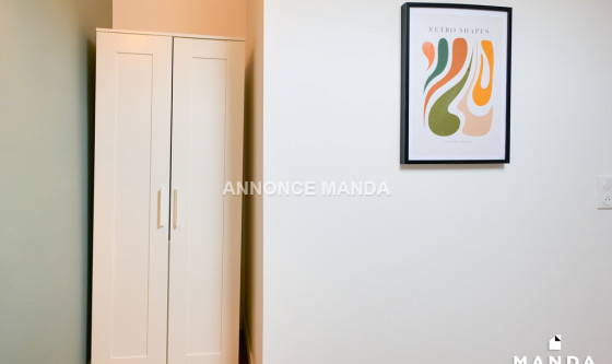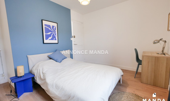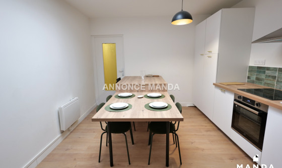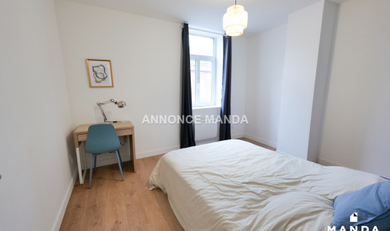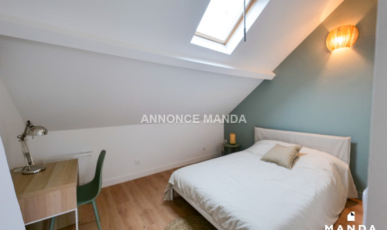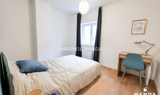 Logement Manda ! Située à Tourcoing, cette chambre dans une maison T5 meublée en colocation de 100m2 se trouve Rue du Dahomey. A 15min de l'arrêt de métro Colbert et non loin des transports en commun, le logement est proche de toutes les commodités. La maison est composée d'un salon, d'une cuisine, de 4 chambres, d'une salle de bain avec douche, d'une buanderie avec lave-linge et de WC séparés. Dans le salon vous trouverez un canapé, une table basse, un écran plat, une table à manger, 4 chaises. La cuisine est équipée d'un four, d'un micro-ondes, de plaques de cuisson, d'une hotte, d'un réfrigérateur congélateur et d'un lave-vaisselle. La chambre est équipée avec lit double, espaces de rangement et bureau. Cette jolie chambre en colocation n'attend que vous! Référence du bien : MANDA-48999
