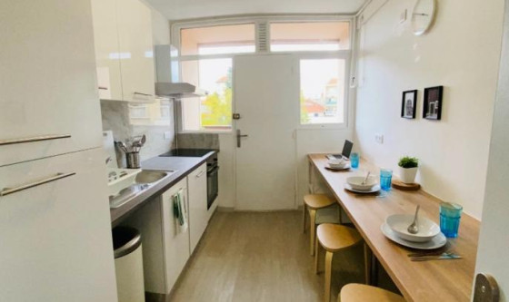 2 chambre(s) libre(s) dans une colocation de 2 chambres dans un appartment de 56m2 Bonjour, L'appartement fait partie d'un immeuble sécurisé avec badge et interphone, pourvu d'un ascenseur et situé en plein centre de Vénissieux à deux pas de la place centrale Léon Sublet. C'est le cœur de ville tranquille de Vénissieux, avec son marché (mercredi et dimanche), commerces, etc. Situé à 5 minutes du tram T4 (qui amène en 1 arrêt au métro D Gare de Vénissieux) ou bien directement à 10 minutes à pied du métro D. Complètement rénové et entièrement meublé, c'est un T4 de 56m². Il est traversant Est-Ouest, 3ème étage avec un balcon. Lumineux et configuré pour une ambiance colocation conviviale, dans un immeuble calme. L'appartement comprend un salon avec écran plat, un accès Internet et un canapé. La pièce toilettes est séparée de la salle de bains qui comprend une machine à laver et une cabine de douche. La cuisine donne sur un balcon et est 100% équipée : Table bar, plan de travail, plaque à induction, micro-ondes, four, frigo, lave-vaisselle, appareil à raclette, assiettes, couverts, faitout, poêles, casseroles, aspirateur, table et fer à repasser… Bref, l'appartement a été refait à neuf pour permettre à chacun d'avoir son propre confort tout en bénéficiant de la convivialité des 2 autres chambres. Bonne visite ! Updated on 22/10/2025 Mise à jour le 22/10/2025