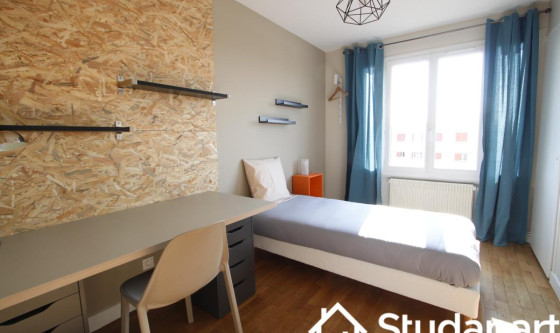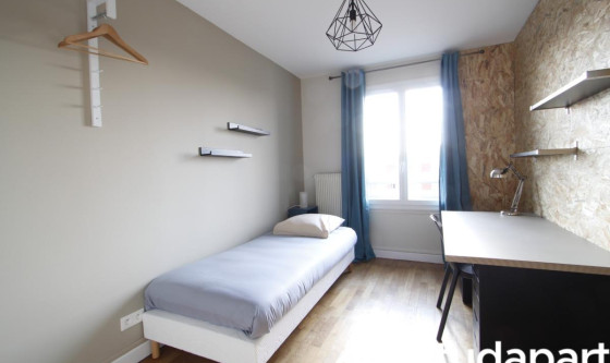1 chambre(s) libre(s) dans une colocation de 1 chambres dans un appartment de 85m2 5 student rooms available in a large, bright apartment, equipped and furnished. 2 shared shower rooms. Apartment on the top floor, calm, with unobstructed view. Ready to move in: WIFI access, washing machine, dryer, dishwasher, dishes, vacuum cleaner, iron… Individual bed sheets and towels provided on demand. Supermarket in a 2-min walk. Bicycles room available in the building. MONTHLY RATE PER ROOM: > electricity, > cold & hot water, > heating > WIFI, > maintenance charges of the building common parts and the waste tax, LOCATION: Close to the Doua campus Shops & groceries at the foot of the building, supermarket in a 2-min walk 7-min walk (600 m) to the Tram station “INSA EINSTEIN” (Line T1) Bus station at the foot of the building (Lines 69, 37, C26, C17) 15-min walk to the Metro station “République-Villeurbanne” (Line A) 1.7 km from the Tête d'Or Park Updated on 13/12/2025 Mise à jour le 13/12/2025