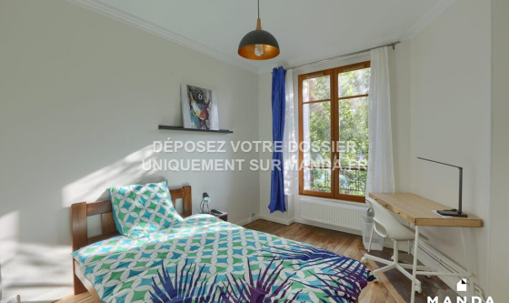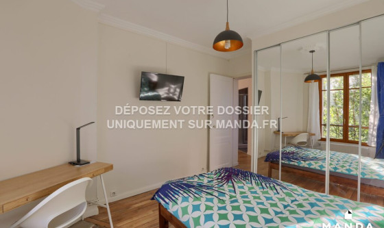 Logement Manda ! Visitez et déposez votre dossier uniquement sur notre plateforme ! Nous ne vous enverrons jamais le bail ou le RIB par mail - tout est sécurisé sur notre plateforme. À 15 minutes à pied de la station de RER C Vitry-sur-Seine, Manda vous propose une chambre dans une colocation en location, meublée et refaite à neuf au 3ᵉ étage dans une résidence calme et sécurisée. L'entrée dispose d'un meuble faisant office de vestiaire. Dans votre pièce principale, vous disposerez d'une table et 4 chaises. Dans votre cuisine, vous disposerez d'un évier, un réfrigérateur, un congélateur, un four, un four à micro-ondes, des plaques de cuisson, une hotte aspirante, une machine à café, un grille-pain, une bouilloire, une table haute avec deux chaises, un lave-vaisselle et de nombreux placards et rangements avec un nécessaire de vaisselle. Votre séjour sera composé d'un évier, un réfrigérateur, une machine à café, des plaques de cuissons vitro-céramiques, une machine à laver et de nombreux meubles de rangements. Dans votre première salle d'eau, vous trouverez une cabine de douche, une vasque avec placards et miroir, un sèche-serviettes électrique, une machine à laver et des WC. Dans votre seconde salle de bain, vous trouverez une baignoire, une cabine de douche, une vasque avec placards et miroir, un sèche-serviette électrique et de nombreux rangements. Les seconds WC sont séparés et possèdent un lave-main. Votre chambre, la chambre n°4 sur le plan, dispose d'un lit deux places, une table de chevet, un bureau, une chaise, une télévision et un grand placard avec étagères et penderie. Très belles prestations pour cette chambre en colocation en location spacieuse, calme et lumineuse. Les charges comprennent l'eau courante, le chauffage, l'eau chaude, l'électricité, internet et l'entretien des parties communes. Située à proximité de nombreux commerces, marchés et restaurants, cette chambre n'attend que vous ! VOUS POUVEZ VISITER PLUS DE 3 000 LOGEMENTS (visite virtuelle + vidéos) ET DÉPOSER VOTRE CANDIDATURE SUR LE SITE WEB MANDA (REF : MANDA-06245) Référence du bien : MANDA-06245
