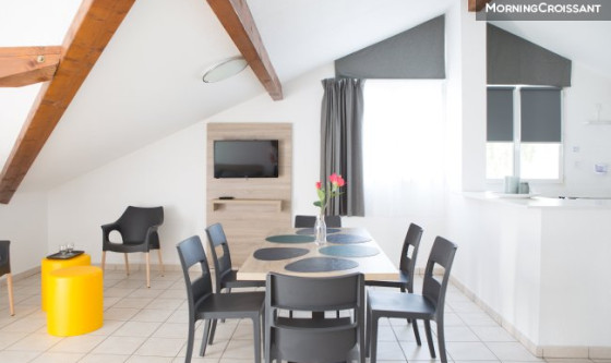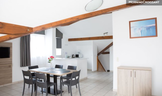 Entre le Jura, les Alpes et la frontière franco-suisse, la petite cité thermale de Divonne-les-Bains présente plus d'un atout. À 20 kilomètres de Genève (15 minutes de l'aéroport) et 50 kilomètres de Lausanne, notre résidence offre un emplacement idéal, aussi bien pour les professionnels travaillant avec la Suisse que pour les touristes de part sa proximité avec le Lac Léman. La résidence met à votre disposition une place de parking en extérieur gratuite (ou place en parking souterrain pour 5€ / nuit). Le ménage hebdomadaire et en fin de séjour sont compris dans le loyer. Lors de votre séjour vous pourrez profiter des services hôteliers proposés par la résidence (laverie et petit déjeuner). L'accueil est ouvert de 7h à 19h. Si vous prévoyez d'arriver après ces horaires, merci de contacter la résidence afin qu'ils vous communiquent le fonctionnement pour les arrivées tardives. L'appartement duplex de 65 m² se compose d'un séjour avec lit-gigogne et TV LCD, d'une chambre avec un lit double, d'une seconde chambre avec 2 lits simples, d'une cuisine équipée et d'une salle de bain avec baignoire. La cuisine dispose d'un micro-ondes, d'un réfrigérateur, d'une bouilloire et de plaques électriques. Une bouilloire, une cafetière ainsi que toute la vaisselle sont également fournies. Sanitaires : baignoire et WC. Couchage : un lit double (140x190), 2 lits simples (90x190) et un lit gigogne (80x190). L'accès Wi-Fi est gratuit. Dans le cadre d'une location saisonnière, en plus du loyer mensuel, une taxe de séjour d'un montant qui varie par nuit et par personne, sera à régler directement auprès de la résidence.