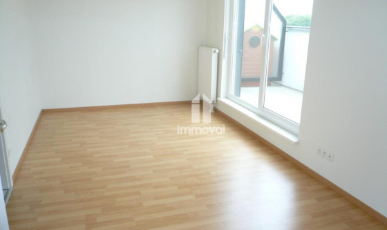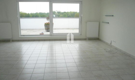IMMOVAL vous propose, à Erstein, rue de Saint-Quentin, un appartement quatre pièces en duplex de 101.12m² , situé au premier étage avec ascenseur. Il se compose, au premier niveau, d'une entrée, de deux chambres, d'une salle de bains, d'un cellier et d'un toilette séparé. Au second niveau, vous trouverez un séjour avec cuisine ouverte aménagée et équipée donnant sur une terrasse, ainsi qu'une salle d'eau et un second toilette séparé et d'une chambre avec terrasse. Une cave et un double garage complètent ce bien. Disponible mi janvier 2026.