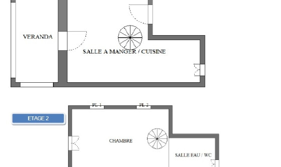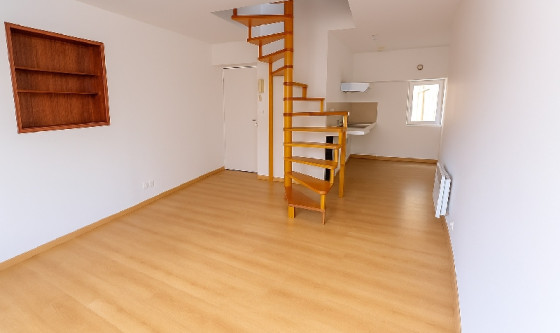Un appartement en duplex avec au 1er niveau un coin cuisine séjour, un balcon avec véranda et au 2ème niveau une chambre avec salle d eau et wc. Vue dégagée sur jolie place de ville. Consultez nos annonces sur www.levigan.net