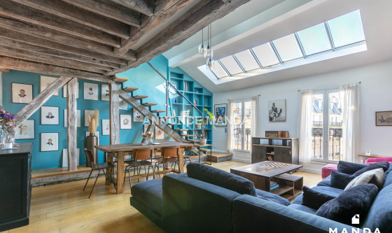 Logement Manda ! L'agence Manda vous propose ce joli T2 meublé type loft, situé Paris 2. Cet appartement en duplex est composé du séjour spacieux avec canapé et table à manger, de la cuisine entièrement équipée, de la chambre avec lit double, d'un bureau et de deux salles d'eau, dont une avec baignoire. Idéalement situé dans un quartier résidentiel paisible et bien desservi, le logement est à proximité des commerces, des écoles et des transports en commun. Disponible immédiatement, ce joli T2 en location n'attend que vous ! Pour rappel, cet appartement est situé dans une zone soumise à encadrement des loyers. Loyer de base : 2550,2€ Loyer de référence majoré (Loyer de base à ne pas dépasser) : 3063,22€ Complément de loyer : 0€ Référence du bien : MANDA-70034