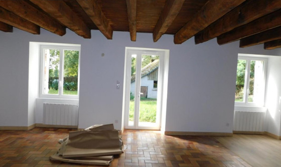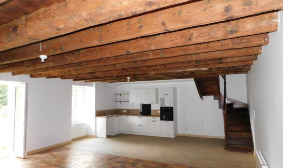 longère à louer comprenant au rez-de-chaussée : salon/séjour avec coin cuisine aménagé et équipé, dégagement, WC, buanderie, chambre et salle d'eau privative, étage : palier avec couloir et placard, salle de bains, WC, deux chambres. cour avec jardin. dépendances. Les informations sur les risques auxquels ce bien est exposé sont disponibles sur le site Géorisques : www.georisques.gouv.fr