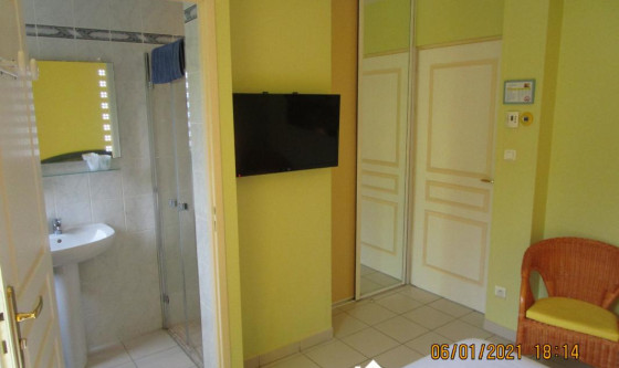 Notre chambre bleue neuve d'environ 11m² dispose d'une salle d'eau privative avec douche a l'italienne/ wifi gratuit/TV. Elle est climatisée et dispose d'une terrasse Les deux étudiants doivent se connaitre.Deux contrats seront établis. Updated on 21/11/2025 Mise à jour le 21/11/2025