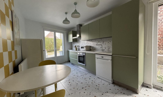 BLENDECQUES - TRES JOLIE MAISON MEUBLEE DE 43,95 m² Venez découvrir cette charmante maison entièrement meublée et équipée avec goût, prête à vous accueillir! Elle se compose d'une entrée avec rangements, d'un séjour lumineux, d'une cuisine aménagée et parfaitement équipée (plaque de cuisson, four, hotte, lave-vaisselle, réfrigérateur et micro-ondes), d'une chambre avec espace salle de bain (douche et lavabo), ainsi que d'un WC séparé avec machine à laver. Chauffage individuel électrique. Disponible de suite A VISITER SANS TARDER! DPE : D Loyer mensuel hors charges : 630,00€ Provision de charges mensuelles : 12,00€ correspondant à la taxe d'enlèvement des ordures ménagères Dépôt de garantie : 1260,00€ Honoraires de visites, constitution du dossier et rédaction du bail : 351,60€ Honoraires d'état des lieux : 131,85€