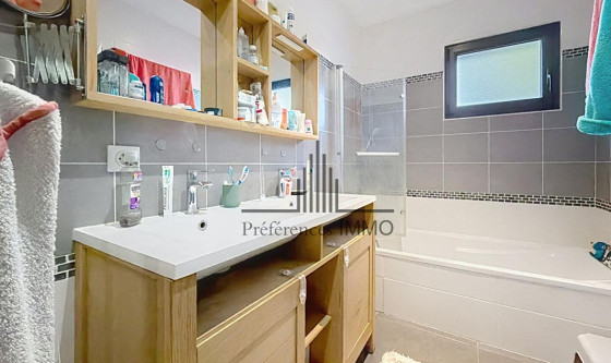 Bruges chemin de la Grave, maison à étage de 2013 MEUBLÉE ( peu de meubles) à louer. Cette maison moderne et confortable avec chauffage au sol gaz, comprend une entrée avec un placard, un WC, un grand séjour traversant qui s'ouvre sur une terrasse et le jardin, une belle cuisine toute équipée ouverte sur le séjour avec une buanderie contiguë. L'étage comprend trois belles chambres, deux chambres avec placard et une chambre parentale avec un dressing, une belle salle de bains avec une douche à l'italienne une baignoire et un meuble double vasque, un wc. Un garage idéal pour ranger vos affaires, complète ce bien très pratique pour une famille ou un jeune couple. Le mobilier comprend trois lits dont un 90, un canapé, table basse gigogne, meuble tv, table salle à manger et chaises, vaisselle. Libre le 1° Mars. Marielle ARENDSEN (EI) Agent Commercial - Numéro RSAC : 523917268 - BORDEAUX.