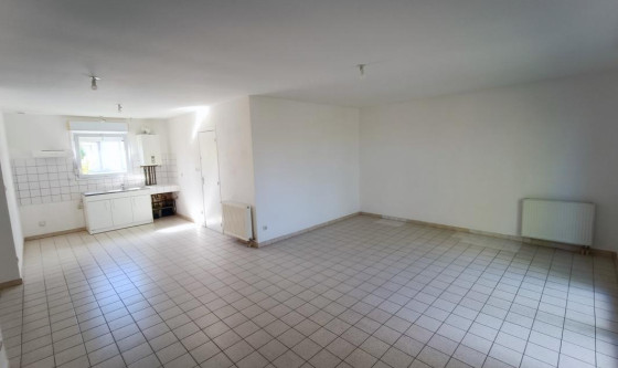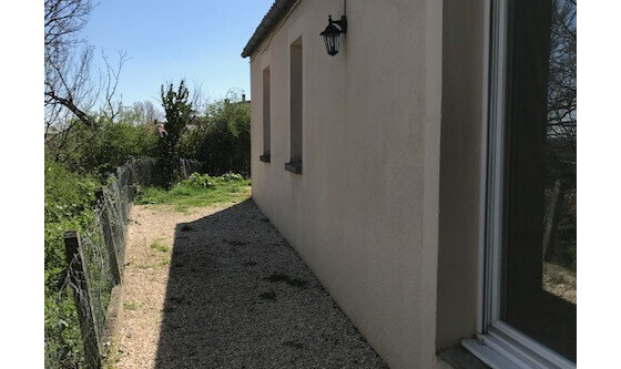 Maison de plain pied de type 4 mitoyenne par le garage comprenant une entrée avec placard, un espace cuisine ouvert sur le séjour, 3 chambres, une salle de bains, un WC, un garage, et un jardinet non clos de 200 m2 environ. Chauffage central gaz de ville. La maison est disponible de suite.