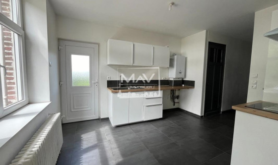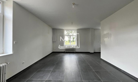A LOUER - ENGLOS - Située au calme et dans un environnement verdoyant, maison de caractère de 101,16m² composée d'une entrée, un vaste séjour, une cuisine aménagée et équipée (four, plaque, hotte), de deux chambres, un bureau (8,99m²) pouvant faire office d'une troisième chambre, une salle de bains et de deux WC. Jardin et stationnement privatif. Menuiserie en double vitrage PVC et chauffage individuel au gaz. Loyer : 1200€ dont 50 € de charges (entretien des parties communes du corps de ferme) A proximité d'Aushopping Englos les Géants, et des axes autoroutiers. Dépôt de garantie : 1150 €. Honoraires agence : 1371,89 € dont 316,59 € pour l'état des lieux. Bien soumis à la Garantie Loyers Impayés.