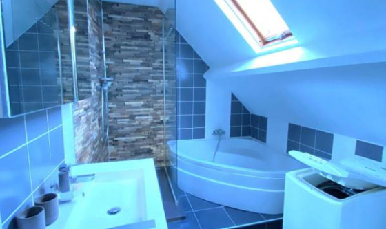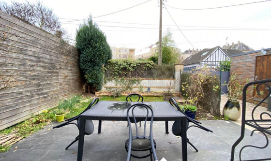 Elle se compose d'une entrée, séjour avec poêle à bois ouvert sur une cuisine aménagée et équipée, donnant sur une terrasse, une chambre et un WC. A l'étage : palier pouvant faire office de bureau, 2 chambres et une salle de bains mixte (Douche et Baignoire). Petit jardin avec terrasse. Cabanon de jardin. Chauffage au gaz de ville. Updated on 30/09/2025 Mise à jour le 30/09/2025