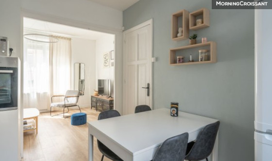 Maison mitoyenne dans rue calme à proximité de la porte Gayolle et remparts de la vieille ville de Boulogne-sur-Mer. A 2 mins à pied de l'arrêt de bus : Résidence Eurvin pour lignes E / N / K2 / TH02. Stationnement autorisé et gratuit dans la rue devant la maison. Commerces à proximité (Carrefour City, boulangerie, pharmacie, restaurants de qualité) A 1,4 km de la gare de Boulogne sur Mer. A 3 km de l'autoroute A16. A 3 mins à pied du centre hospitalier de Boulogne-sur-Mer. Maison meublée de belle décoration et totalement équipée de 70 m2 composée : -Rez-de-chaussée : entrée, toilette, séjour avec cuisine ouverte équipée (lave-vaisselle, plaque induction, four, four micro-onde, réfrigérateur/congélateur, vaisselle et tous ustensiles); la cuisine donne sur la terrasse et le jardin de 70m2; -Premier étage : deux chambres (lits 160cm) et salle d'eau équipée (douche, double vasque, sèche-serviette, lave-linge et sèche-linge) ; -Deuxième étage : chambre mansardée très lumineuse (lit 180cm ou 2 lits 90cm).