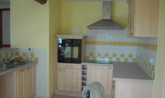 MAISON T3 Comprend: salle de séjour avec poêle à bois, cuisine américaine équipée (plaque induction, four, hotte), rangement sous escalier, wc. A l'étage : Dégagement, 2 grandes chambres, salle de douche. Jardin + terrasse.