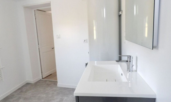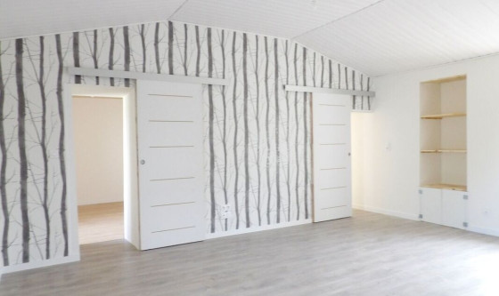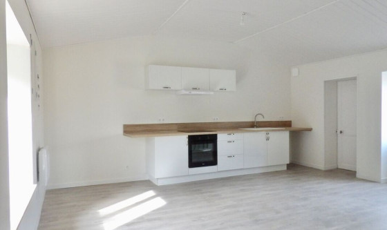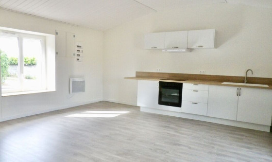 Maison de plain-pied de 55 m2 habitables comprenant une pièce de vie avec cuisine aménagée et équipée (four, plaque, hotte), deux chambres, une salle de bains avec wc. Auvent et dépendance. Terrain de 345 m2. Chauffage électrique et ouvertures en pvc et double vitrage. Disponible début mars 2026.