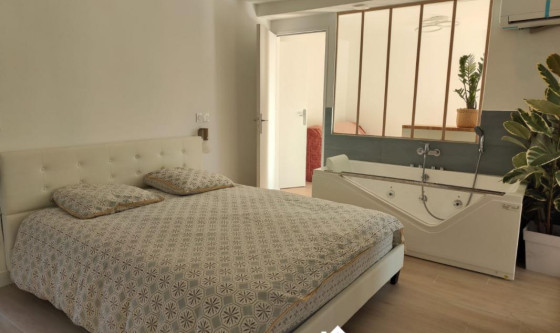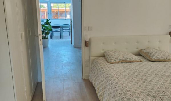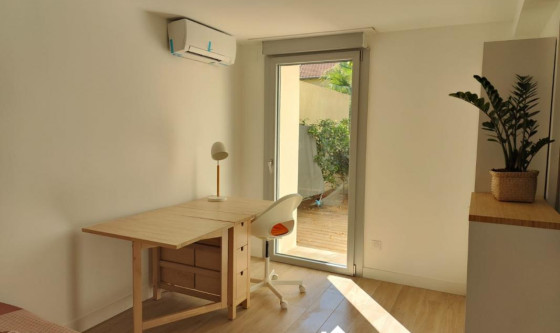 Loue un T3 de 75m2 avec 2 chambres en rez de chaussée d'une maison avec un petit jardin privé et un grand jardin partagé, ainsi que 2 places de parking. L'appartement est refait à neuf, climatisé et entièrement équipé avec qualité : matelas neuf à mémoire de forme, baignoire balnéo, home cinéma avec rétroprojecteur, salle de sport, cuisine entièrement équipée, sèche linge…. Le quartier est très calme. Loyer de 1500 euros charges incluses. Idéal pour couple. Updated on 14/10/2025 Mise à jour le 14/10/2025