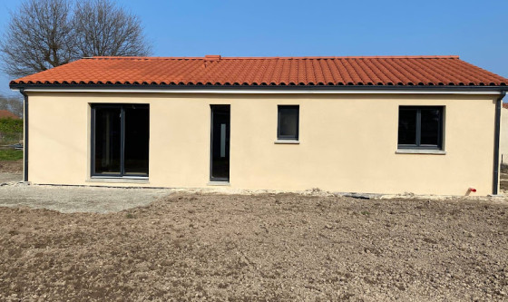 Maison neuve comprenant 3 chambres dont une suite parentale plus un bureau, cuisine ouverte sur séjour, jardin. Maison RE2020 à faible consommation énergétique (classe A).