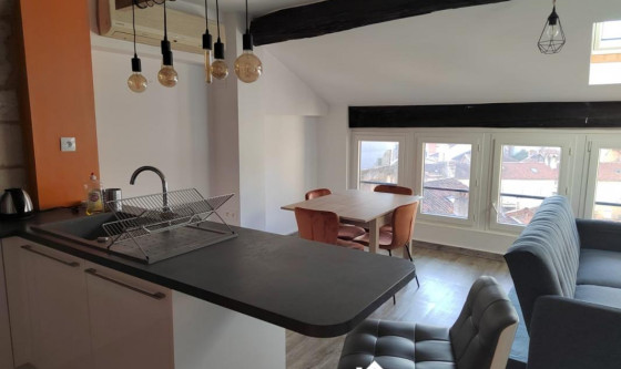 Smart Investissement vous propose un T2 de 50m² entièrement meublé et équipé au 3ème et dernier étage en plein coeur du centre historique. Décoré avec goût, l'appartement se compose d'une chambre, d'une agréable pièce de vie avec coin salon et salle à manger, cuisine ouverte, équipée et fonctionnelle, dans laquelle vous trouverez tout l'électroménager nécessaire : four, plaques, hotte, frigo, vaisselle et ustensiles de cuisine. La location : 550 € / mois décomposés de la manière suivante : - Loyer : 500 € - Provision sur charges (internet, eau, charges de copropriété) : 50 € Frais d'agence à la charge locataire : 550 € TTC Dépôt de garantie équivalent à 1 mois de loyer hors charges Garantie VISALE ou caution solidaire Éligible aux APL Updated on 18/11/2025 Mise à jour le 18/11/2025