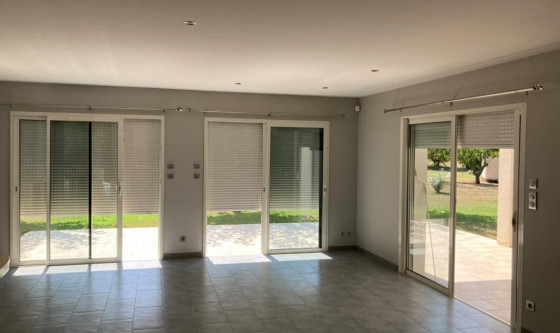 Votre agence Novilis vous propose à la location cette maison moderne récente, très lumineuse de 112 m² de plain pied, au calme à 5 minutes du centre ville, comprenant : une entrée avec placard, une grande pièce à vivre lumineuse avec climatisation réversible, une cuisine ouverte aménagée et équipée (lave vaisselle, four, plaque gaz, hotte), un cellier, trois chambres avec placards dont une suite parentale avec dressing et accès direct à la salle d'eau de la maison, un WC séparés. Deux belles terrasses dont une couverte et pourvues de stores bannes électriques. La maison est équipée d'une pompe à chaleur, du chauffage par le sol et d'un système d'aspiration centralisé. Un grand garage de 40 m² env. et un grand jardin non clôturé complètent l'ensemble.