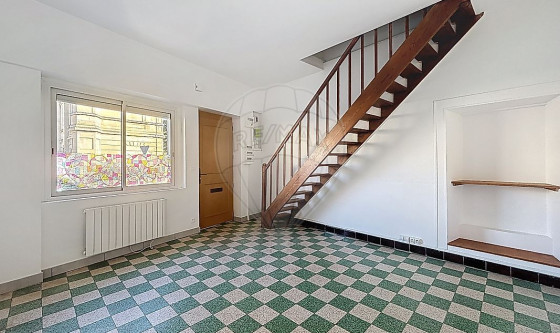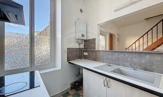 Au rez-de-chaussée : Séjour lumineux avec cuisine ouverte partiellement équipée, dégagement menant à une salle d'eau et à des WC séparés. A l'étage : Palier, deux grandes chambres confortables