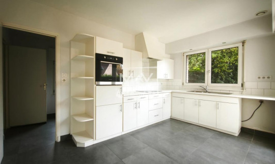 A LOUER - WASQUEHAL - Située avenue de la Marne, à quelques mètres de la station de tramway Cartelot et du centre commercial Carrefour, maison individuelle au calme de 158 m² habitable, composée d'une entrée avec WC indépendants, un séjour 35,75m², cuisine aménagée et équipée (four, plaques, hotte), un cellier attenant, une suite parentale avec dressing et salle de bains. A l'étage, trois chambres dont une avec de grands placards, une salle de douche et un WC séparé. Jardin de 993m², une cave et un garage double complète cette maison. Chauffage individuel électrique et menuiserie en double vitrage PVC. Loyer : 2125€ - Dépôt de garantie : 2125€ - Honoraires charges locataire : 2060€ dont 475€ état des lieux.