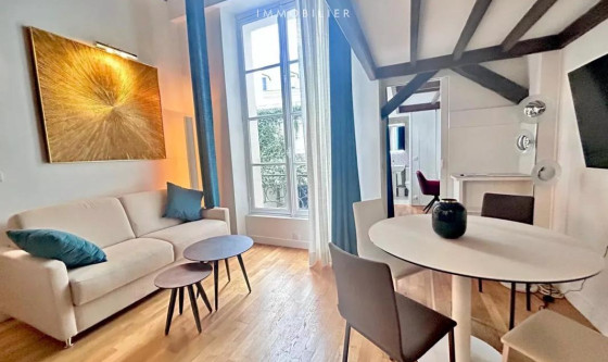 Découvrez ce charmant appartement meublé situé dans le quartier prisé de Monnaie, rue Mazarine, Paris 6ème. Ce bien, entièrement meublé, allie élégance et confort. La pièce principale est baignée de lumière grâce à ses grandes fenêtres, offrant une vue dégagée. La mezzanine confère un espace supplémentaire idéal comme chambre ou bureau. La décoration contemporaine et le mobilier moderne créent une atmosphère conviviale et chaleureuse, parfaite pour s'y installer immédiatement. Loyer charges comprises 1590eur Dépôt de garantie 2mois de loyer hors charges Honoraires de location en bail code civil 12% du loyer annuel