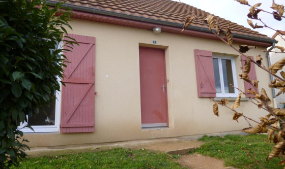Loue dans zone pavillonnaire, à 20 minutes de Montluçon, sur la commune d'Archignat , pavillon de plain pied de 77 m² offrant :entrée - cuisine - séjour - WC - 3 chambres - salle de bainsGarage et jardin clos.Les charges en sus de 38 € comprennent les contrats maintenance robinetterie, chaudière et la taxe d'enlèvement ordures ménagères.pour tout renseignement, contactez nous au 04.70.28.72.81
