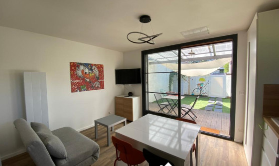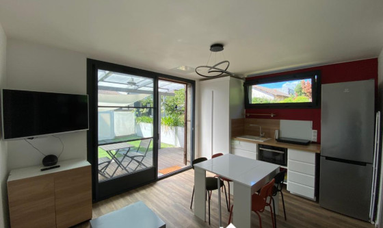 Situé sur une propriété à Gradignan - A proximité de commerce, transport et du campus (Kedge, Creps, Université de Bordeaux…). Cuisine ouverte sur petit salon avec un canapé lit de 120 / un coin chambre (pouvant se fermer) avec 1 lit en 140 / de nombreux rangements / un extérieur avec une terrasse couverte / un espace jardinet privatif / un cabanon et une place de parking sur terrain clos. Les espaces sont judicieusement optimisés pour faciliter le quotidien d'un étudiant. Provision sur Charges 90 euros Caution 1400 euros Updated on 18/11/2025 Mise à jour le 18/11/2025