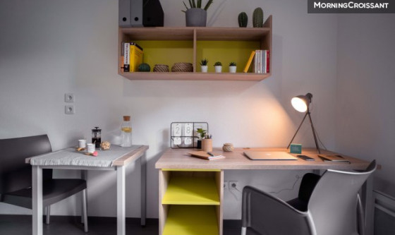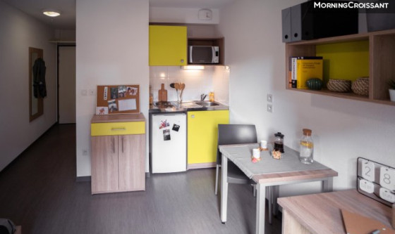 Notre résidence étudiante bénéficie d'une situation privilégiée, au coeur du campus universitaire Angers Belle-Beille. Installez-vous en toute tranquillité, dans le confort et la sécurité de nos logements étudiants, dans le calme incomparable et le décor de verdure de notre résidence. Les lignes de bus n° 1, 4, 6 et 14 vous permettent de rejoindre le centre-ville d'Angers en quelques minutes. Équipements des logements étudiants • Kitchenette équipée (évier, plaques électriques, réfrigérateur, four à micro-ondes), table de cuisine, rangements, chaise… • Salle d'eau (baignoire ou douche), meuble vasque, miroir avec bandeau lumineux, WC • Pièce à vivre avec lit, table et lampe de chevet, bureau, fauteuil, placard avec penderie et étagère, • Prise de téléphone / TV, compteur électrique individuel, • Internet wifi gratuit dans la salle de travail, • Accès possible à internet dans les appartements