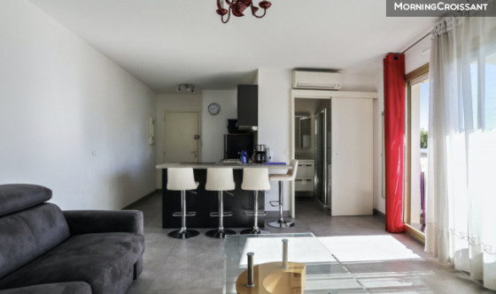 Situé à Juan les Pins, ce studio est idéal pour accueillir 2 personnes. Ce studio moderne se situe à 5 min des plages et à 15 min de la gare d'Antibes Studio de 35 m² situé au 6ème étage avec ascenseur est composé de : -un salon lumineux avec canapé convertible -une cuisine spacieuse entièrement équipée (bouilloire, machine à café, grille-pain, four, micro-ondes, plaques de cuisson, lave-vaisselle, frigo) -une grande terrasse ensoleillée -une salle de bain -aspirateur, lave-linge, matériel de repassage, sèche cheveux -des rangements -TV Ce studio est équipé d'une climatisation. Des frais de gestion d'un montant de 385€ vous seront demandés avant votre entrée dans les lieux.