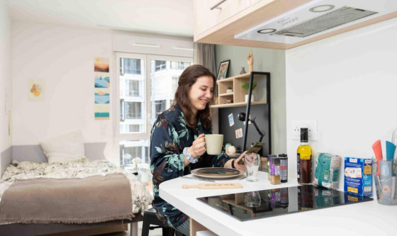 résidence étudiante de 300 studios, de 17 m² à 23 m². Le bâtiment couvre 7 200 m² répartis sur 9 niveaux et a été conçu par l'architecte Alfonso Femia. Il sera certifié NF Habitat HQE et bénéficiera du Label Effinergie. La résidence disposera d'espaces de vie partagés pour le travail et les loisirs ainsi que de 220 m² d'espaces extérieurs incluant une terrasse de 80 m² au rez-de chaussée et un rooftop de 75 m². Elle sera ainsi facilement accessible depuis les pôles universitaires de Cergy-Pontoise (Gennevilliers), Paris 13, Paris 8. Mise à jour le 24/11/2025 Ref : 2803