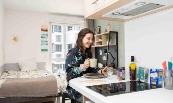 résidence étudiante de 300 studios, de 17 m² à 23 m². Le bâtiment couvre 7 200 m² répartis sur 9 niveaux et a été conçu par l'architecte Alfonso Femia. Il sera certifié NF Habitat HQE et bénéficiera du Label Effinergie. La résidence disposera d'espaces de vie partagés pour le travail et les loisirs ainsi que de 220 m² d'espaces extérieurs incluant une terrasse de 80 m² au rez-de chaussée et un rooftop de 75 m². Elle sera ainsi facilement accessible depuis les pôles universitaires de Cergy-Pontoise (Gennevilliers), Paris 13, Paris 8. Mise à jour le 11/12/2025 Ref : 2803