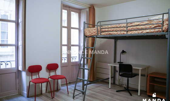 Logement Manda ! Situé à Bordeaux, ce studio de 27m2 se trouve Rue des Herbes. A 1min à pied de l'arrêt de tramway Sainte Catherine, le logement est proche de toutes les commodités. L'appartement est composé d'une pièce principale, d'une cuisine séparée et d'une salle de bain avec baignoire et WC. Dans la pièce principale, vous trouverez un lit en hauteur, un bureau, un canapé convertible, une table basse, une armoire et une étagère. La cuisine est équipée avec plaques de cuisson, hotte, micro-ondes, lave-linge et réfrigérateur. Ce joli studio en location n'attend que vous! Pour rappel, cet appartement est situé dans une zone soumise à encadrement des loyers. Loyer de base : 542,9€ Loyer de référence majoré (Loyer de base à ne pas dépasser) : 650,94€ Complément de loyer : 0€ Référence du bien : MANDA-61445