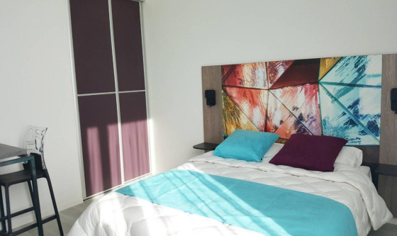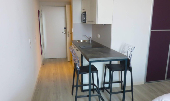 L'Appart-Hôtel Mer & Golf City est situé en plein cœur du nouvel éco-quartier de « Bordeaux Ginko ». Il se trouve ainsi à proximité immédiate du Parc des Expositions, du Palais des Congrès, du Stade Matmut Atlantique et du Lac de Bordeaux. Les jardins collectifs, les allées piétonnes et commerçantes, le lac et les canaux aménagés contribuent à une atmosphère à la fois urbaine et nature. L'emplacement est idéal : > à quelques mètres de la ligne C du tramway (desservant le Parc des Expositions, le centre-ville historique et la gare LGV, mais aussi les communes de Blanquefort, Bègles et Villenave d'Ornon) Tous les commerces et restaurants sont à proximité immédiate avec notamment la zone commerciale du Lac regroupant l'ensemble des plus grandes enseignes pour du shopping irrésistible ! Face à l'établissement, la Halle Gourmande propose un large choix de restaurants. L'Appart-Hôtel Mer & Golf City se compose de 97 logements répartis en cascade du 2ème au 8ème étage avec ascenseur. L'espace petit-déjeuner dispose d'une terrasse donnant sur un patio arboré. Une salle de fitness se situe à proximité de la réception et une laverie au rez-de-chaussée. Tous les appartements sont spacieux, lumineux et climatisés. Ils sont orientés sud-est ou nord-ouest. Etablissement non-fumeur. Parking gratuit dans la zone commerciale en face de l'établissement ou garage couvert payant (places limitées). * Les draps, couettes et oreillers sont à fournir par l'étudiant. Mise à jour le 03/12/2025 Ref : 2406