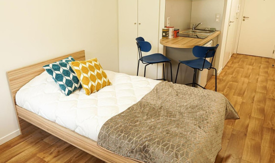 Streamline propose 183 apparts de type studio et T1. Meublés et aménagés avec style, ils disposent tous d'un coin bureau avec rangements, d'une kitchenette équipée avec kit vaisselle complet, d'une salle de bain privative avec WC et d'un lit. Entièrement imaginée pour t'offrir un lieu de vie original, la résidence étudiante Streamline propose, dans un style Art Déco inspiré de l'univers bling-bling de Gatsby Le Magnifique, des espaces communs propices au bien-être, à la créativité et au partage : zone de co-working, espace détente avec borne d'arcade, bibliothèque, canap', TV et cuisine commune. Une gamme complète de services est également à ta disposition pour simplifier ton quotidien et te permettre de te concentrer sur l'essentiel : connexion internet, laverie automatique avec sèche-linge, parking privé, prêt d'appareils électroménagers, livraison de Suit'Dej, prestations de ménage… Enfin, Marco le manager est disponible pour l'ensemble des étudiants, et organise tout au long de l'année des événements qui rythment la vie de la résidence et donnent l'impression de vivre en communauté dans une grande colocation. Il ne te reste plus qu'à poser tes valises, Welcome HOME ! Mise à jour le 03/12/2025 Ref : 2388