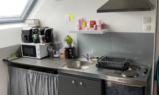 Studio non-meublé comprenant : une pièce de vie avec coin cuisine aménagé et équipé (plaques, hotte et frigo top), une salle d'eau et wc séparés. Chauffage électrique. Velux bois double vitrage. CHARGES = TOM + ELECTRICITE DES COMMUNS « Les informations sur les risques auxquels ce bien est exposé sont disponibles sur le site Géorisques : www.georisques.gouv.fr »