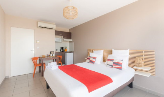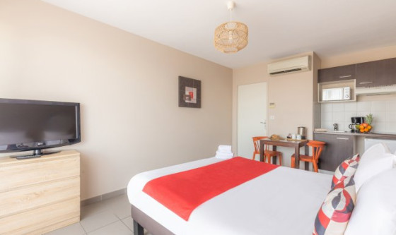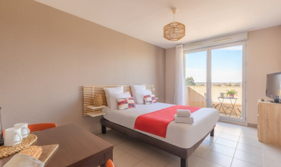 La Résidence vous accueille à 15 km du centre-ville de Toulouse et à 10 minutes de route de l'aéroport de Toulouse-Blagnac. Il dispose d'une piscine extérieure ouverte de mai à septembre et d'une salle de jeux où vous pourrez jouer au billard. Les appartements et studios sont climatisés et dotés d'une connexion Wi-Fi gratuite illimitée. Ils comprennent tous une télévision à écran plat et une kitchenette équipée. Servi chaque matin, le petit-déjeuner buffet inclut une variété de pains, des viennoiseries, des boissons chaudes et froides, des œufs brouillés ainsi que des produits laitiers. Vous aurez accès à une laverie moyennant des frais supplémentaires. Les places de parking sur place sont disponibles sur réservation et non-incluses dans le prix du loyer, supplément à prévoir. À noter aussi que les animaux sont acceptés moyennant un coût supplémentaire. Dans le cadre d'une location saisonnière, en plus du loyer mensuel, une taxe de séjour d'un montant qui varie par nuit et par personne, sera à régler directement auprès de la résidence.