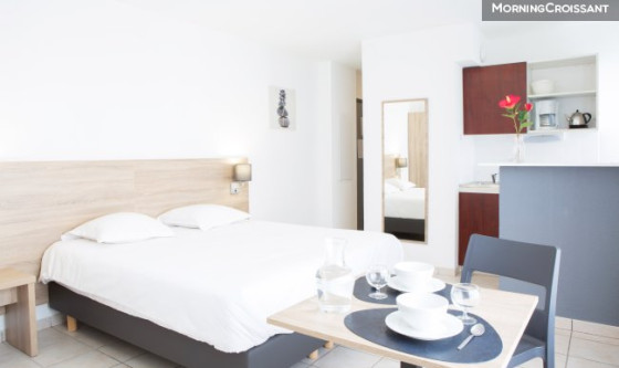 Entre le Jura, les Alpes et la frontière franco-suisse, la petite cité thermale de Divonne-les-Bains présente plus d'un atout. À 20 kilomètres de Genève (15 minutes de l'aéroport) et 50 kilomètres de Lausanne, notre résidence offre un emplacement idéal, aussi bien pour les professionnels travaillant avec la Suisse que pour les touristes de part sa proximité avec le Lac Léman. La résidence met à votre disposition une place de parking en extérieur gratuite (ou place en parking souterrain pour 5€ / nuit). Le ménage hebdomadaire et en fin de séjour sont compris dans le loyer. Lors de votre séjour vous pourrez profiter des services hôteliers proposés par la résidence (laverie et petit déjeuner). L'accueil est ouvert de 7h à 19h. Si vous prévoyez d'arriver après ces horaires, merci de contacter la résidence afin qu'ils vous communiquent le fonctionnement pour les arrivées tardives. Le studio de 26 m² se compose d'une TV LCD, d'un lit double, d'une cuisine équipée et d'une salle de bain avec baignoire. La cuisine dispose d'un micro-ondes, d'un réfrigérateur et de plaques électriques. Une bouilloire, une cafetière ainsi que toute la vaisselle sont également fournies. Sanitaires : baignoire et WC. Couchage : un lit double (140x190) – 2 lits simples possibles sur demande. L'accès Wi-Fi est gratuit. Dans le cadre d'une location saisonnière, en plus du loyer mensuel, une taxe de séjour d'un montant qui varie par nuit et par personne, sera à régler directement auprès de la résidence.