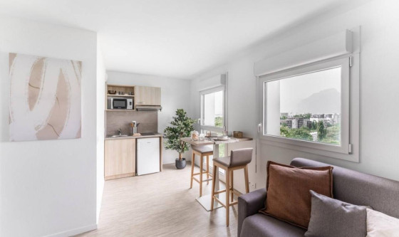 Pour plus d'information sur cette résidence, un standard téléphonique vous est mis à disposition : + 33 9 70 70 03 83 La résidence étudiante, Campus des Sciences de Grenoble, est une résidence neuve et entièrement sécurisée. Elle bénéficie d'espaces communs comprenant un jardin japonais privatif et une terrasse aménagée, ainsi qu'une salle de sport moderne dont les étudiants peuvent pleinement profiter pour se détendre. Une salle d'étude est à la disposition des étudiants pour travailler seul ou à plusieurs. Les appartements sont entièrement meublés et équipés dans un esprit contemporain. La résidence propose des studios et T1 de 20 à 27 m² avec terrasse mais aussi des T4 de 82 m² conçus pour la colocation jusqu'à 3 personnes. Aux abords de la Capitale des Alpes, le Campus des Sciences est idéalement situé et les transports en commun, dont le Tram, aux portes de la résidence offrent de nombreuses possibilités de déplacement vers le centre de Grenoble et les principaux lieux d'études supérieures. Les premiers campus sont à seulement 15 min de trajet et le Centre Commercial Grand Place à quelques pas seulement. Les locataires profitent de vélos mis à disposition qu'ils peuvent utiliser au gré de leur besoin, d'un parking intérieur ainsi que d'une laverie en supplément. Sont inclus dans le loyer les charges d'eau chaude, de chauffage et d'électricité. Un accueil est à la disposition des étudiants pour la gestion du quotidien au sein de la résidence et réception des colis. Les frais de dossier, l'accès internet haut débit dans les logements et les parties communes ainsi que deux ménages par mois sont offerts. Mise à jour le 03/12/2025 Ref : 1749