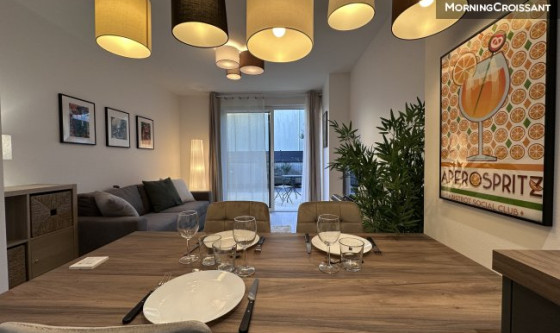Bienvenue au Studio Harmonia, un cocon moderne au cœur d'Eckbolsheim ! Profitez d'un quartier calme avec commerces à deux pas et mi novembre un accès direct en tram vers Strasbourg ligne F. Situé en rez-de-chaussée, le studio offre une entrée indépendante, une terrasse privative pour se détendre et un intérieur cosy pensé pour votre confort. Parfait pour un séjour pratique et chaleureux. Parking gratuit à proximité. Vous séjournerez dans un studio moderne entièrement neuf, situé au rez-de-chaussée d'une résidence de standing avec accès indépendant. L'espace nuit est équipé d'un canapé-lit convertible confortable et il est possible d'accueillir une troisième personne grâce à un lit d'appoint. La cuisine équipée comprend plaques à induction, micro-ondes, cafetière type Nespresso, grille-pain, bouilloire et tout le nécessaire pour cuisiner facilement. La salle de bain moderne dispose d'une douche spacieuse, d'un meuble vasque, de WC et d'une machine à laver. Vous apprécierez également la terrasse privative, prolongement agréable du logement, aménagée avec une table et des chaises pour profiter d'un moment en extérieur. Situé dans un quartier calme avec commerces à deux pas, le studio sera bientôt encore mieux connecté grâce à la nouvelle ligne de tram reliant directement Strasbourg. Un parking gratuit est disponible à proximité.